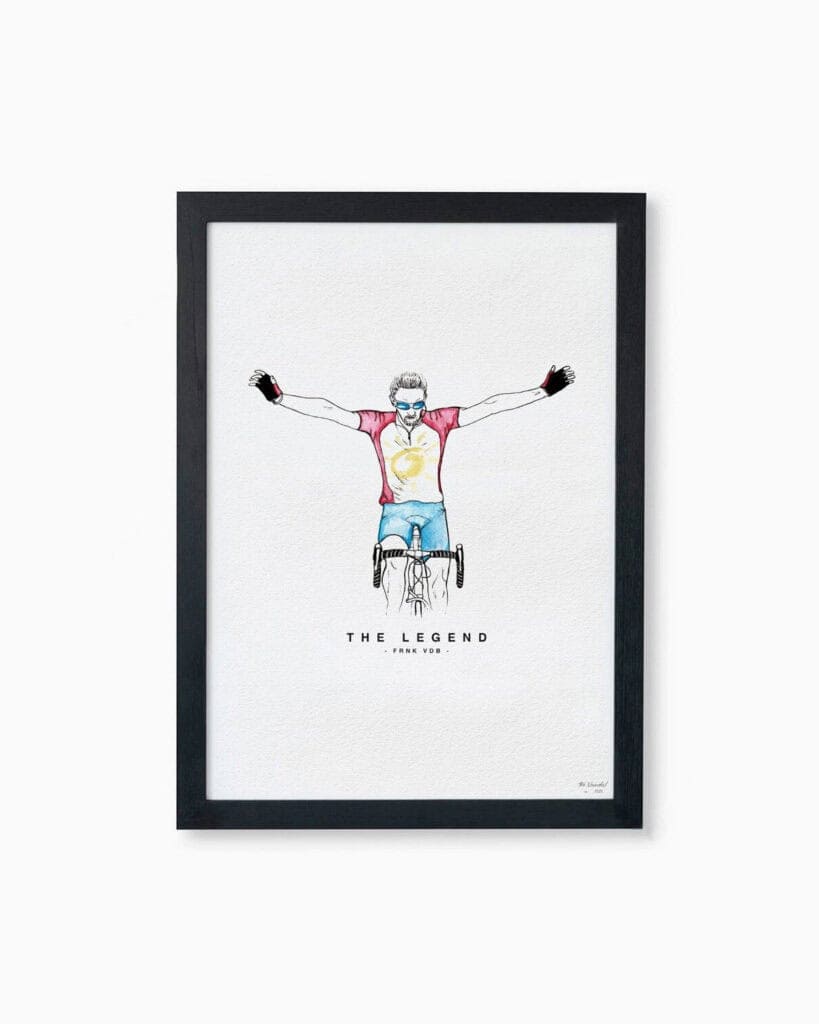 Frank Vandenbroucke: hero, legend, GOD! VDB was considered one of the top talents of the international peloton. In the youth categories VDB won no less than 7 national titles. He continued on this momentum in the pro peloton with victories in Gent-Wevelgem, Paris-Nice, the Omloop Het Volk and Liège-Bastogne-Liège. But even more for his charisma and appearance, he will forever be chiseled in the hearts of many cycling enthusiasts. With unseen style and beauty, he stroked the pedals while his opponents were already hanging between the frame with their tongue on the guidon. (Just ask Bartoli). With the approval of his family, we made this fitting tribute to "our" Il Bimbo d'Oro. Hand drawn and painted with watercolor.