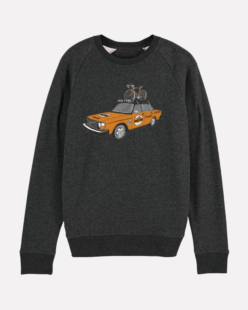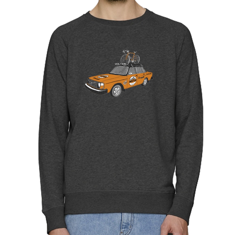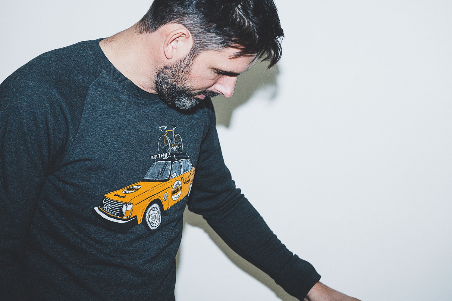 The Molteni Team Car is an homage to legendary cycling coaches such as Guillaume Driessens, Robert Lelangue and Giorgio Albani. Through the window orders and drinking bottles were given to Merckx’s loyal lieutenants: Joseph Bruyere, Vic Van Schil and Jos De Schoenmaecker. These helpers then navigated back through the peleton and escorted ‘The Cannibal’ safely from one victory to the next.