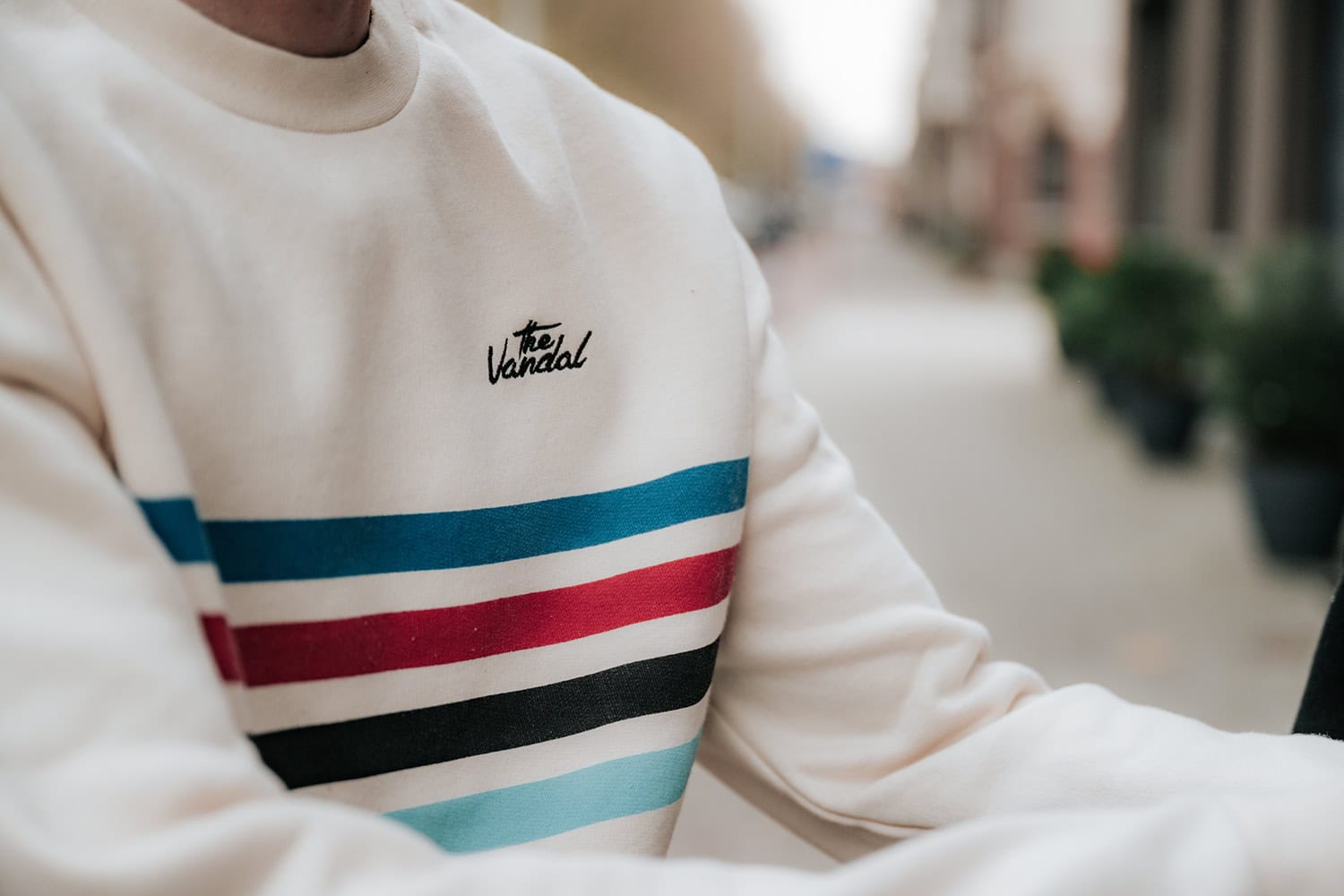 Our Track Sweater takes its inspiration straight from the cycling track. The iconic blue, red and black lines are every track rider's beacons: tight laps, full speed, and eye on the line in front of you.