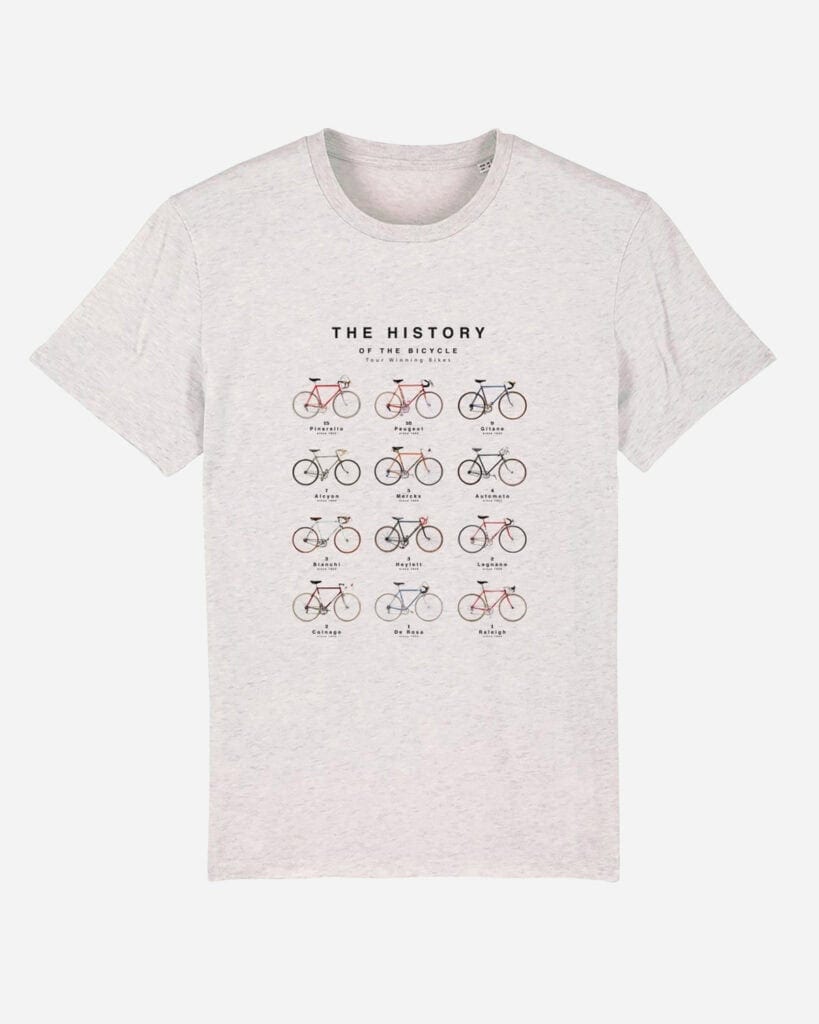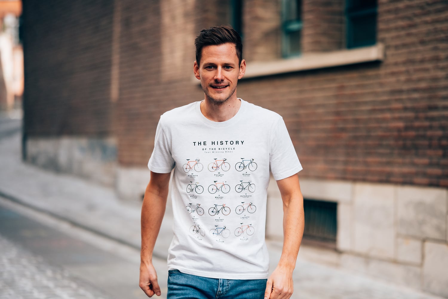 The History of the Bicycle 2.0 is a collage and a selection from the history of the most striking and most successful bicycle manufacturers through the ages. Because the racing bike and its makers are often just as famous and celebrated as the drivers who rode them. After being one of our classics for a few years, it was time to give this print a new look. The story remains the same but the look and numbers have been slightly modified. The bikes are listed chronologically according to which most Tour de France victories were won at the time we created them. From Pinarello with 16 tour victories (Indurain, Wiggins & Froome) to Bianchi (3 victories) and De Rosa (1 victory).