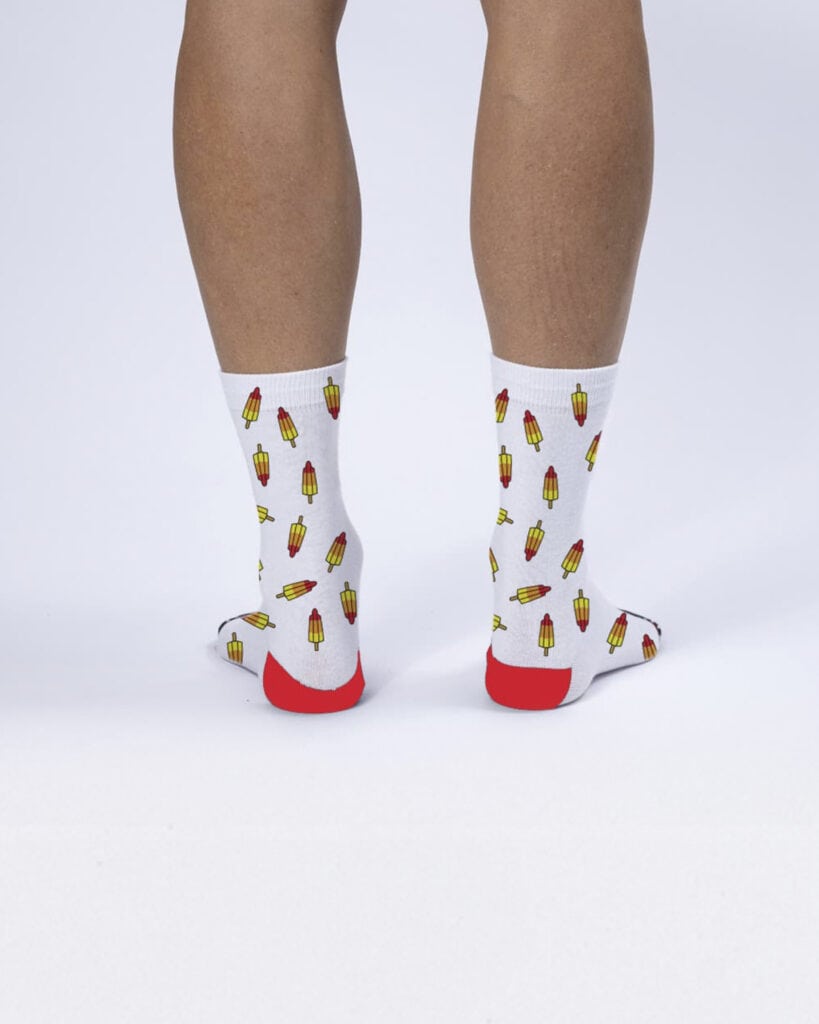 Pas aussi rafraîchissante qu'une glace à la fusée après une balade estivale, mais au moins aussi amusante ! Nos chaussettes joyeuses vous ramènent directement aux jours d'été insouciants. La nostalgie s'en va - et cette fois-ci pas de votre glace. Offrez à vos pieds un nouveau look, pour qu'ils brillent eux aussi comme si c'était les vacances tous les jours.