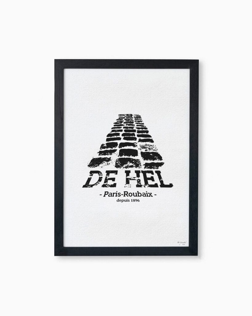 De Hel van het Noorden is 1 van de 5 monumenten en wordt als sinds 1896 georganiseerd. Deze loodzware klassieker wordt gereden over de legendarische kasseien van Noord-Frankrijk. Stroken als Het Bos van Wallers, Mons-en-Pévèle en Carrefour de l’Arbre staan bij ieder koersminnend mens in het geheugen gegrift als de hel op aarde of zoals Michel & José het zo mooi kunnen verwoorden “Die kasseien zijn er van op een afstandje ingegooid”. Kortom een poster als ode aan één van de zwaarte en meest legendarische wielerwedstrijden.