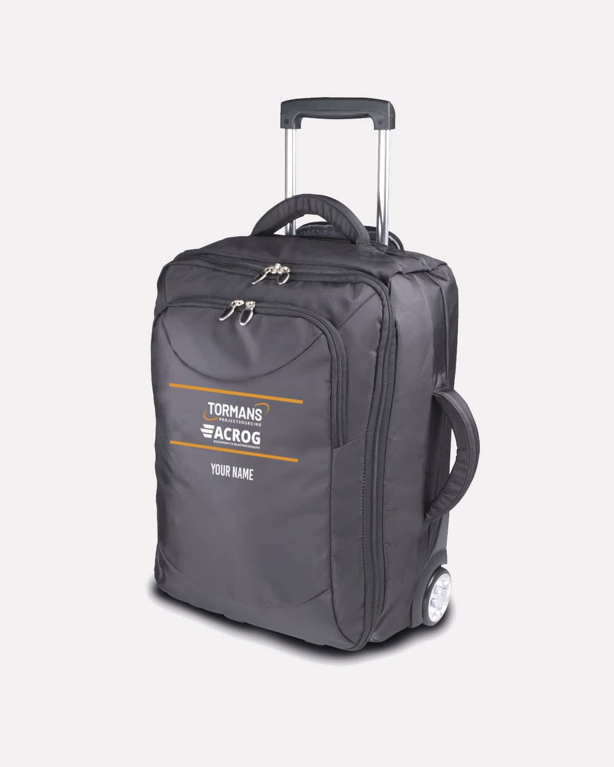 Geschikt voor de cabine van een vliegtuig. Dubbele, uitschuifbare trekstang met twee standen. Zware wielen. Slijtvaste stootplaat aan de onderkant. Spanbanden aan de binnenkant. Geschikt voor laptops tot 15,6″. Gevoerd laptopvak. Organiser indeling achter voorklep. Afgedekte naamkaarthouder. Afsluitbaar hoofdvak. Mesh binnenzak met rits. Draag handvat. Gevoerde handgreep.