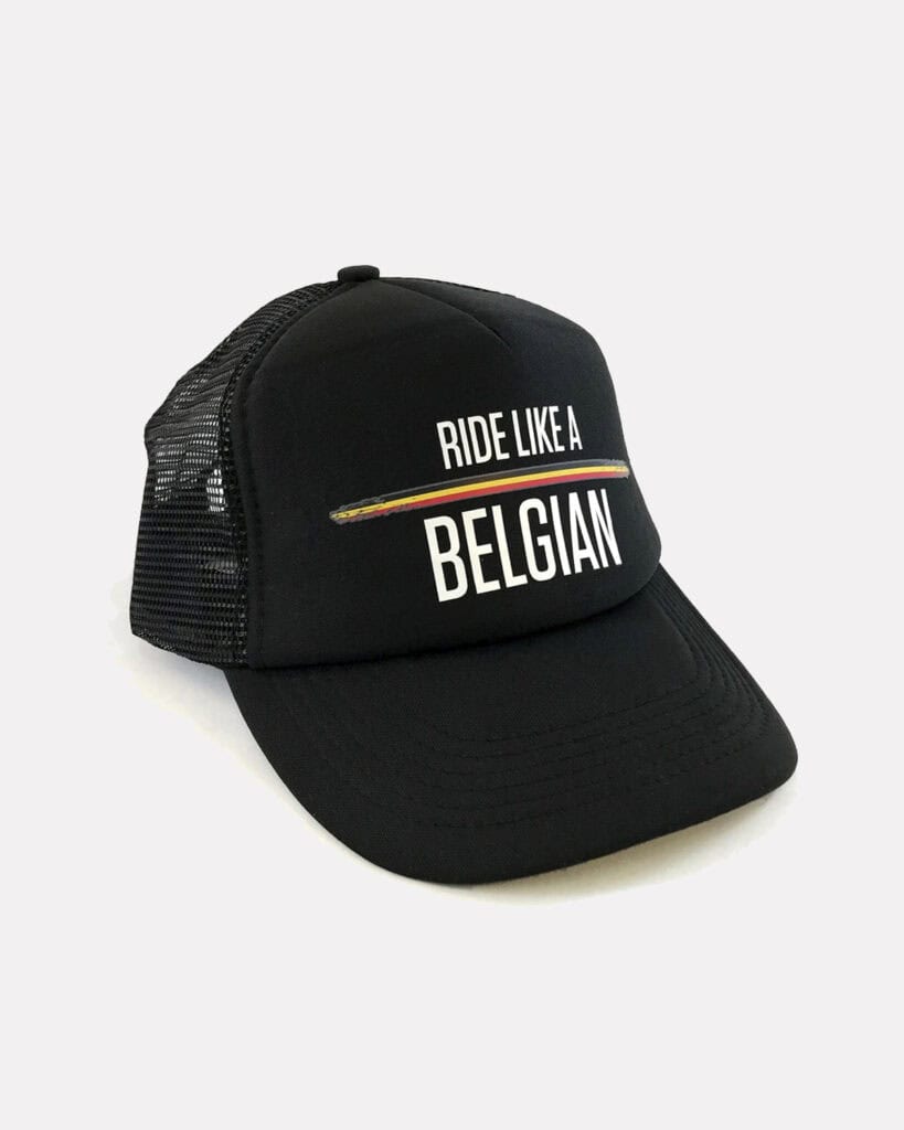 Deze trucker cap van Belgian Cycling zegt waarop het staat, Ride Like A Belgian! Over Vlaamse kasseien, Waalse heuvels of in waaiers door het vlakke land. In samenwerking met Belgian Cycling (Koninklijke Belgische Wielerbond KBWB) ontwierpen we ook twee caps. The Vandal is erg trots de huisleverancier te zijn van alle casual kleding voor Belgian Cycling. Ontworpen en gedrukt in België, voor en door échte wielerfans! Deze basic trucker pet is van 100% polyester. Een degelijk en duurzame cap met sluiting achteraan. One size fits all.