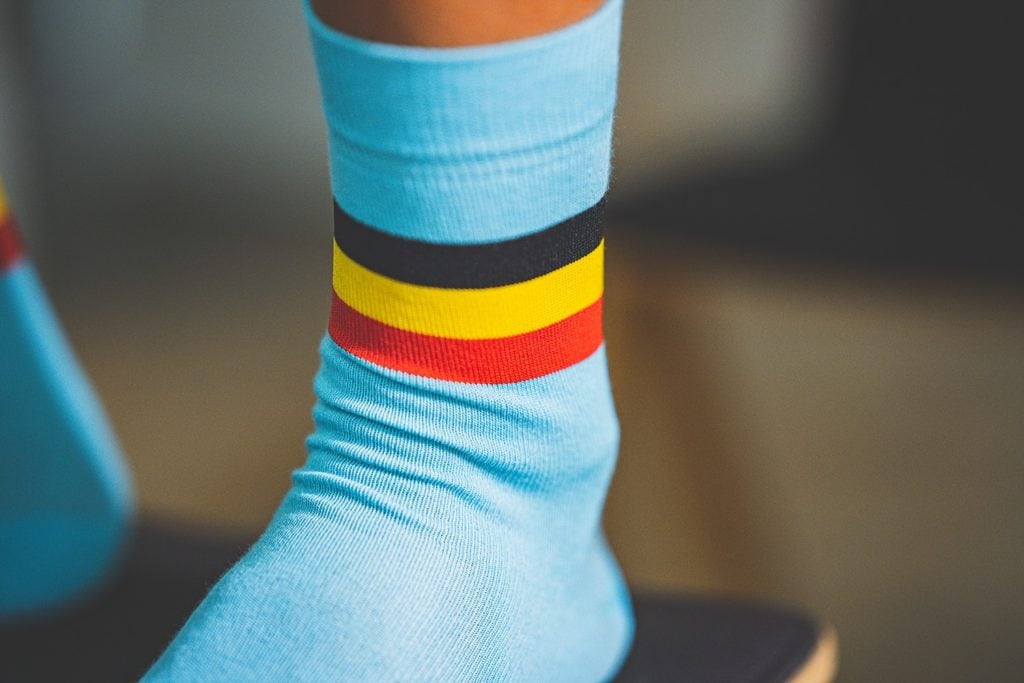 Supporter voor Wout, Victor, Greg en Remco vanuit je luie zetel maar in stijl met onze Belgian Cycling casual sokken. In samenwerking met onze vrienden van Belgian Cycling.