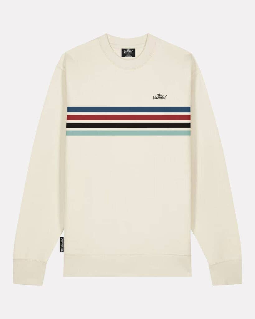 Onze Track Sweater haalt zijn inspiratie recht uit de wielerpiste. De iconische blauwe, rode en zwarte lijnen zijn de bakens van elke baancoureur: strakke rondjes, volle snelheid, en oog op de lijn voor je.