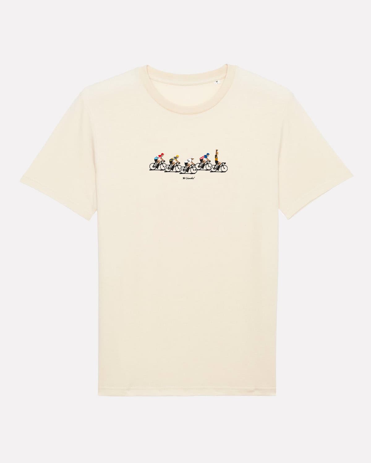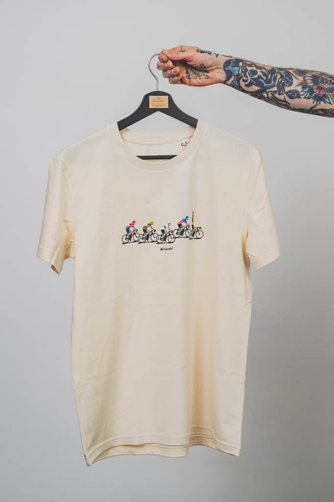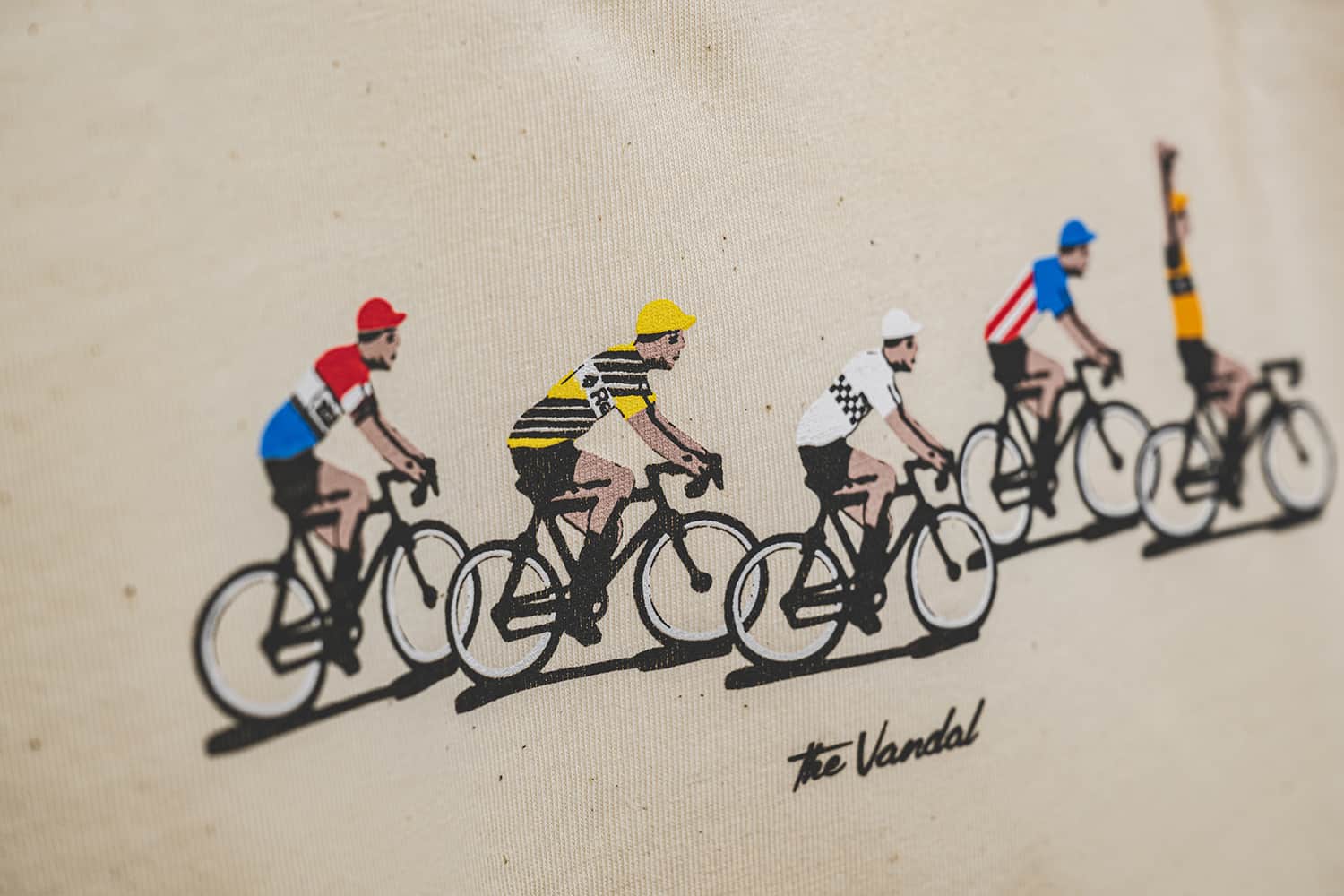 Het zou zo maar een fotofinish kunnen zijn uit de jaren 60 en 70 met enkele van de mooiste truitjes ooit uit het peloton.