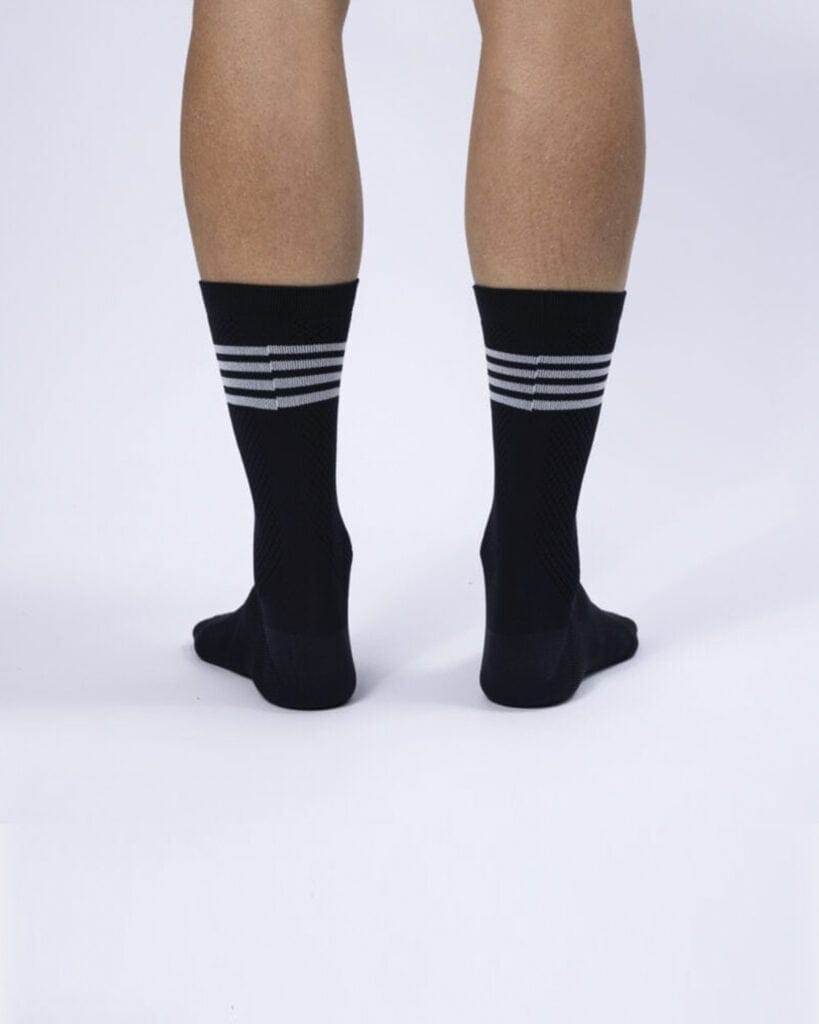 Marginal gains. Voor de coureur is elk detail belangrijk. Zeker en vast de sokken. De juiste hoogte, matching kleur met je kit, ze maken je look af en zorgen tegelijk voor het nodige comfort. Met onze cycling socks heb je deze perfecte mix. Met een hoogte van 20 cm ,de zweetafdrijvende eigenschappen en de ondersteunende stretch van onze sokken ben je klaar om te knallen. Deze BLCK. Socks zijn de perfect match met onze BLCK. Jersey.