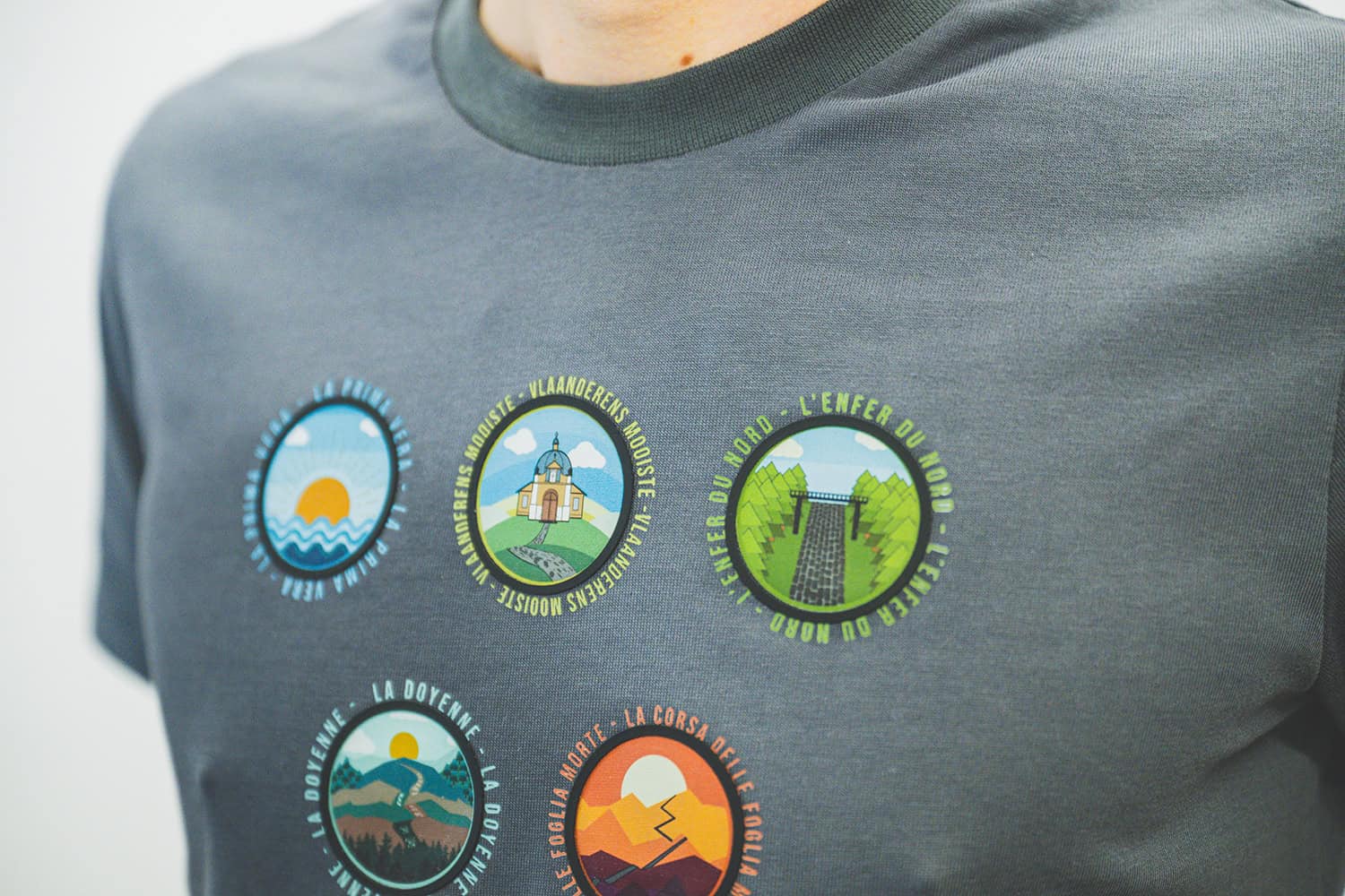 The Classics 2.0 T-Shirt. The Classics of de monumenten zijn een verzamelnaam voor de 5 mooiste eendagswedstrijden van het seizoen. Milaan San Remo, met zijn 298Km de langste wedstrijd van het jaar, De Ronde oftewel Vlaanderen’s mooiste (introductie niet nodig), Parijs-Roubaix, de helleklassieker met zijn meer dan 55 km aan kasseien, Luik-Bastenaken-Luik of La Doyenne de oudste wedstrijd van allen en als sluitstuk van het seizoen De ronde van de vallende bladeren die traditioneel het einde van het seizoen aankondigt. De 5 miniatuurafbeeldingen vatten elke koers met zijn bijnaam mooi samen.