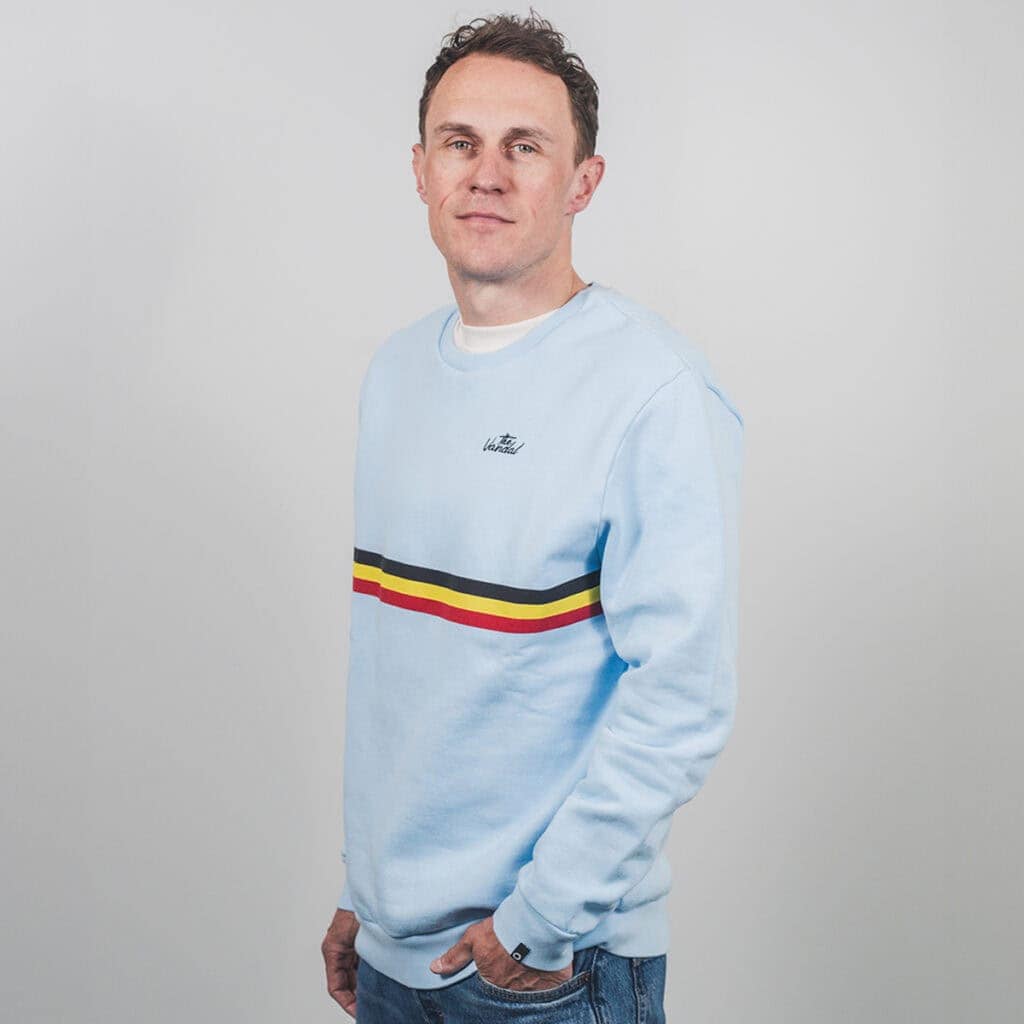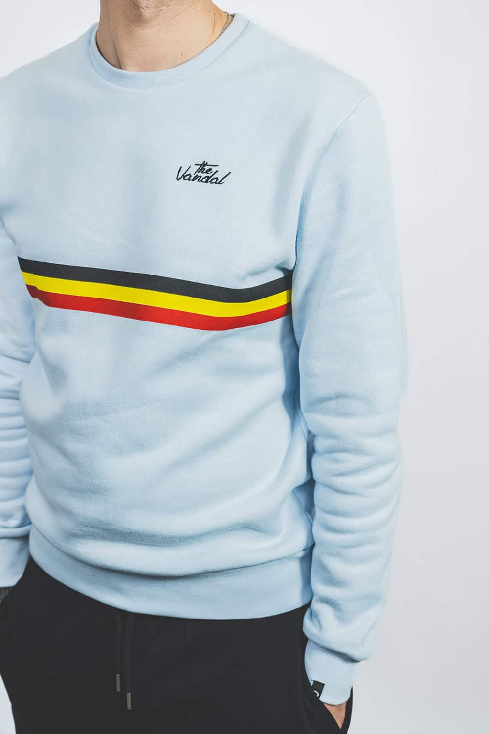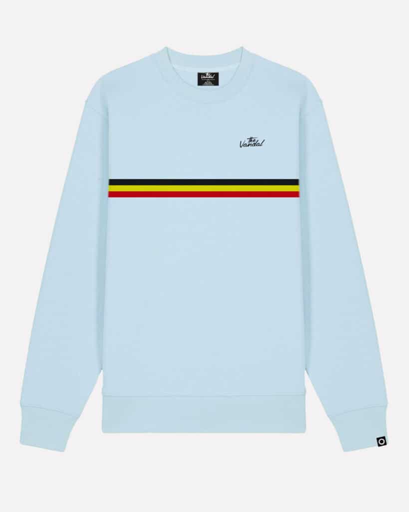 The Vandal is de trotse officiële casual kledingpartner van de Belgische Wielerbond, Belgian Cycling. Deze Tricoloresweater is geïnspireerd op het tijdloze ontwerp van de nationale wielertrui, dat al jaren onveranderd is gebleven. We hebben er een casual versie van gecreëerd met een knipoog naar het origineel, inclusief een volledige tricolore streep en een geborduurd logo. De productie van dit shirt vindt volledig plaats in Europa, met speciale aandacht voor ecologische duurzaamheid en eerlijke werkomstandigheden. Juich onze nationale helden toe in deze officiële fan sweater.