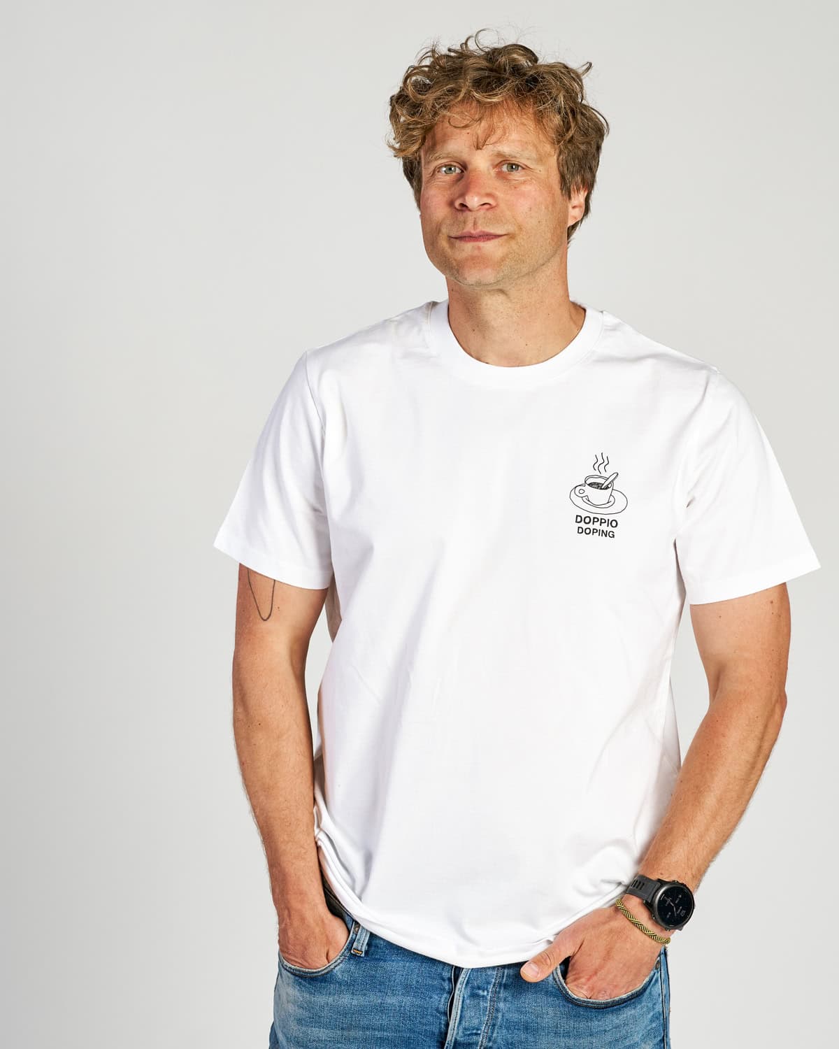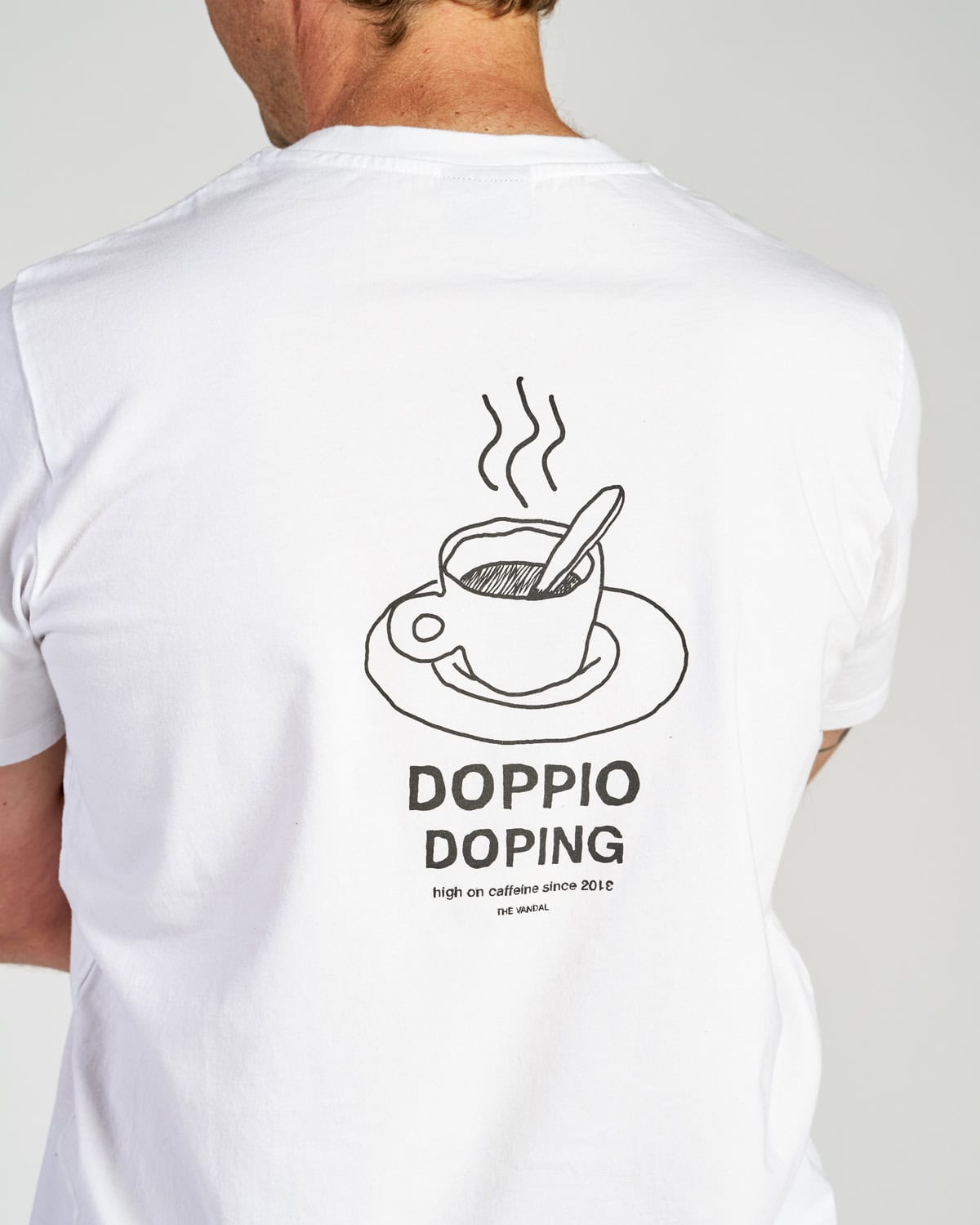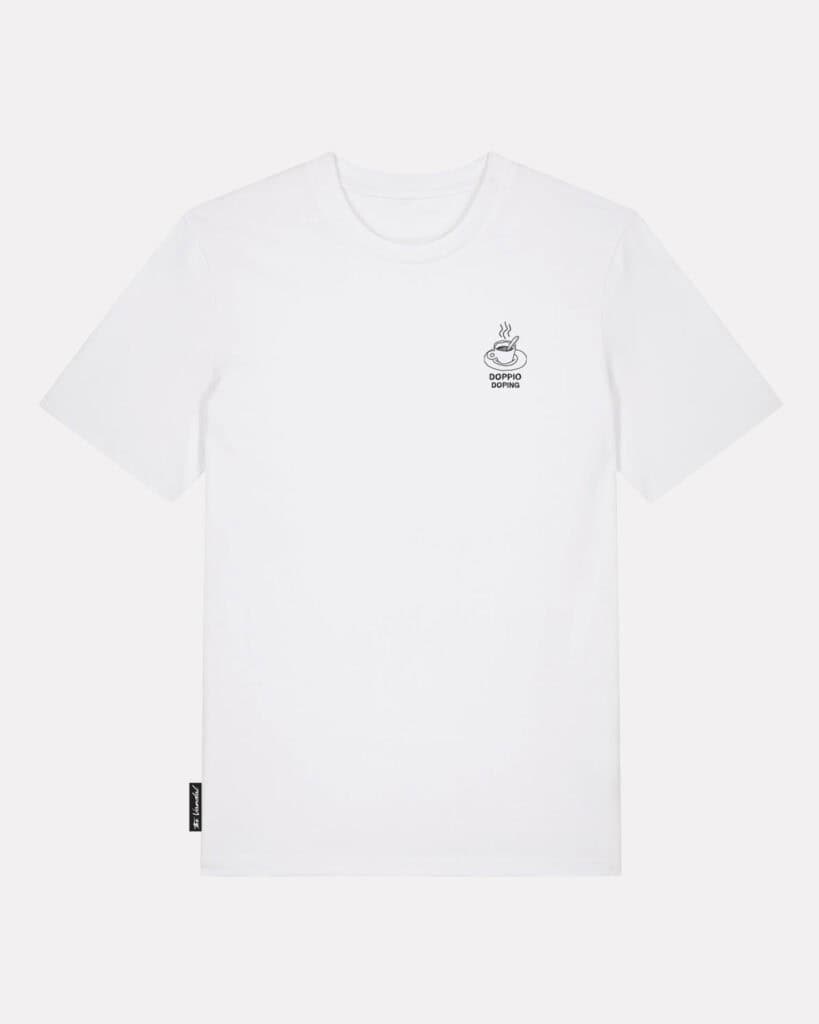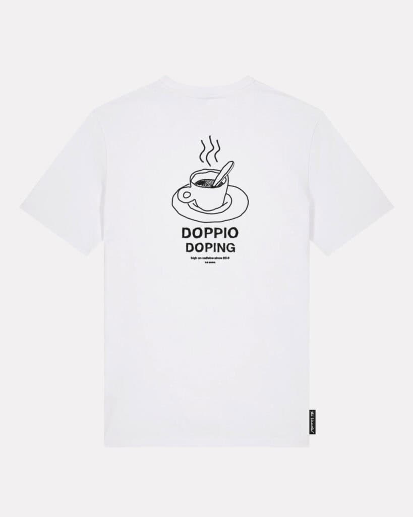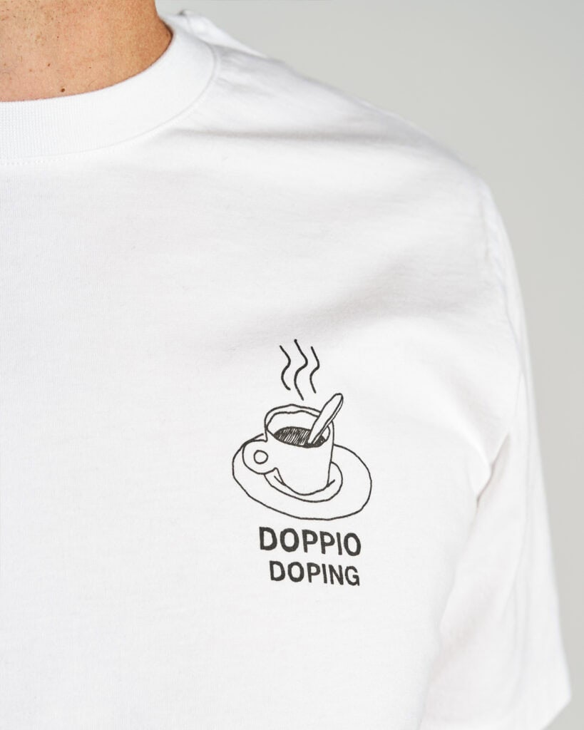 Of je nu door de stad cruist, heuvels trotseert, of thuis in je zetel of cafe zit – draag onze Doppio Doping t-shirt met trots.